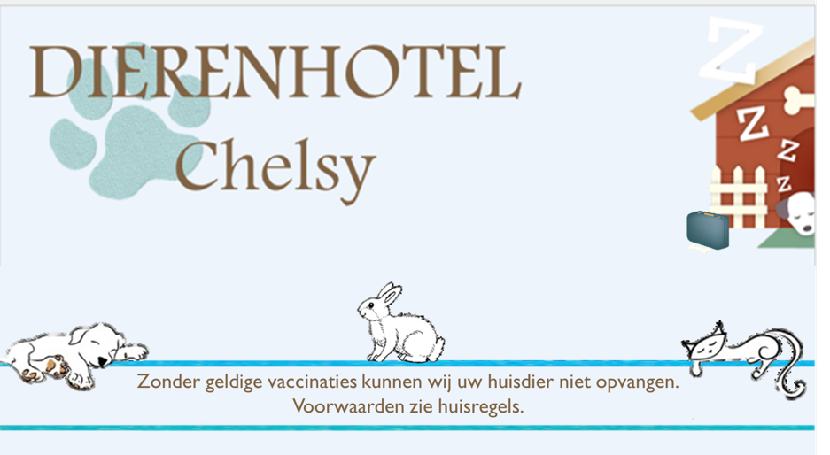Het kan zijn dat u om de één of andere reden tijdelijk niet voor uw huisdier kunt zorgen. Zoals: een daguitstap, een vakantie, een ziekenhuis opname, een zakenreis, familiefeest, ... In die gevallen kan "Dierenhotel Chelsy" u een goede opvang bieden. Dit voor lang als kort verblijf.
